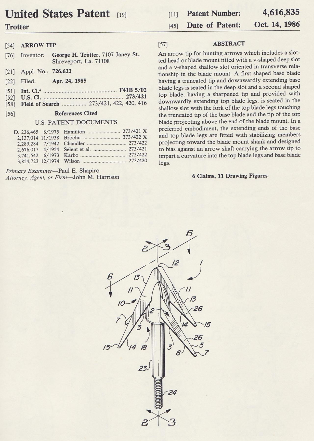 First page of Trotter patent number 4,616,835 October 14, 1986 Click here for larger image