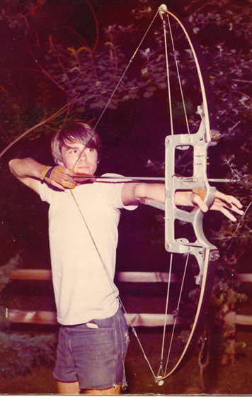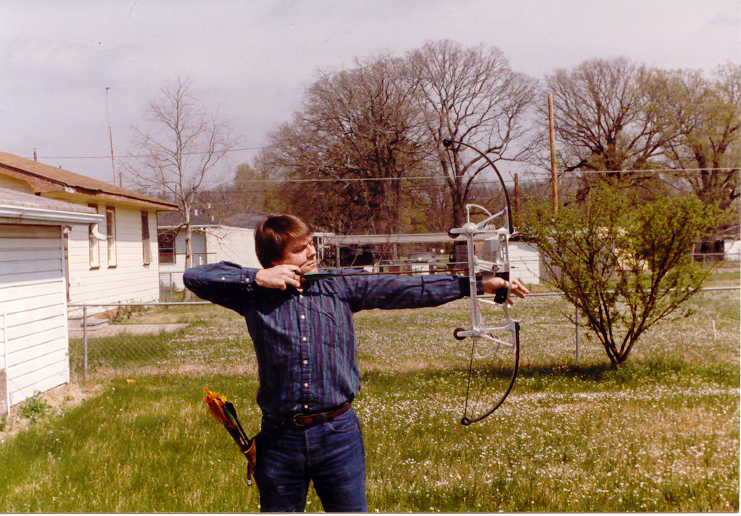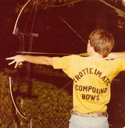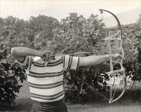 Mark Trotter with Trottermatic Compound Bow, March 1989